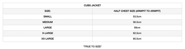 “Number One Cubs” stitched on the front chest for an understated nod to our brand identity