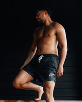 Super fitting and quick drying swim short. Featuring our white Polybear design subtly embroidered on the black shorts.