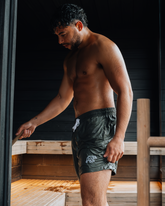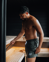Super fitting and quick drying swim short. Featuring our white Polybear design subtly embroidered on the olive shorts.
