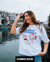 The Sunday Mornings tee is all about slow starts, good coffee and coastal living. Featuring a hand-drawn moka pot, croissant and cup illustration, it celebrates the ritual that built our brand weekend caffeine, Cornish views and no rush.